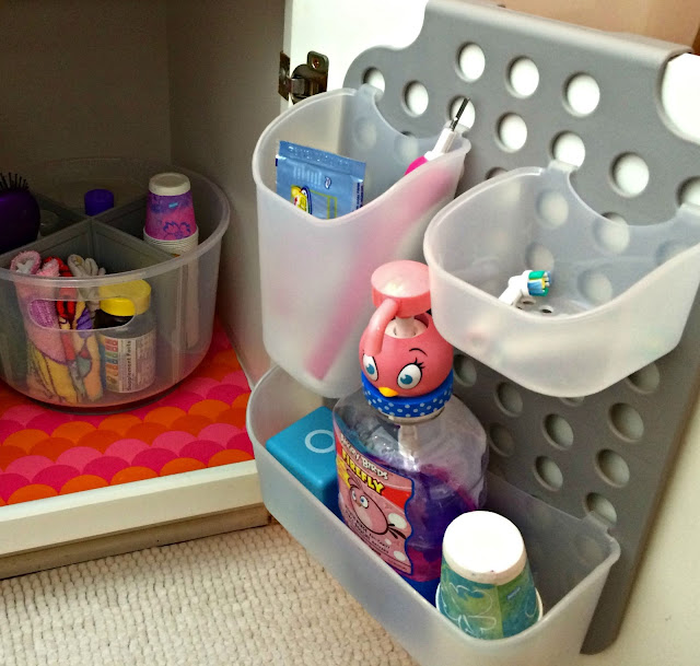 All things for oral hygiene for my littles would fit perfectly within the hang-it, clearing up a very congested and small countertop. The ventilated holes sealed the deal. No more puddles of water on the counter. No more leaky toothpaste tube left out. All items had a home. Toothbrushes, toothpaste, mouthwash, cups and toothbrush timer all living together in harmony on the inside of the bathroom cabinet door. With this system in play, there would be not more searching high and low to brush teeth. And this my friends, is where the hang-it lives. My girls would be so luck! That's 2 for the madesmart team!