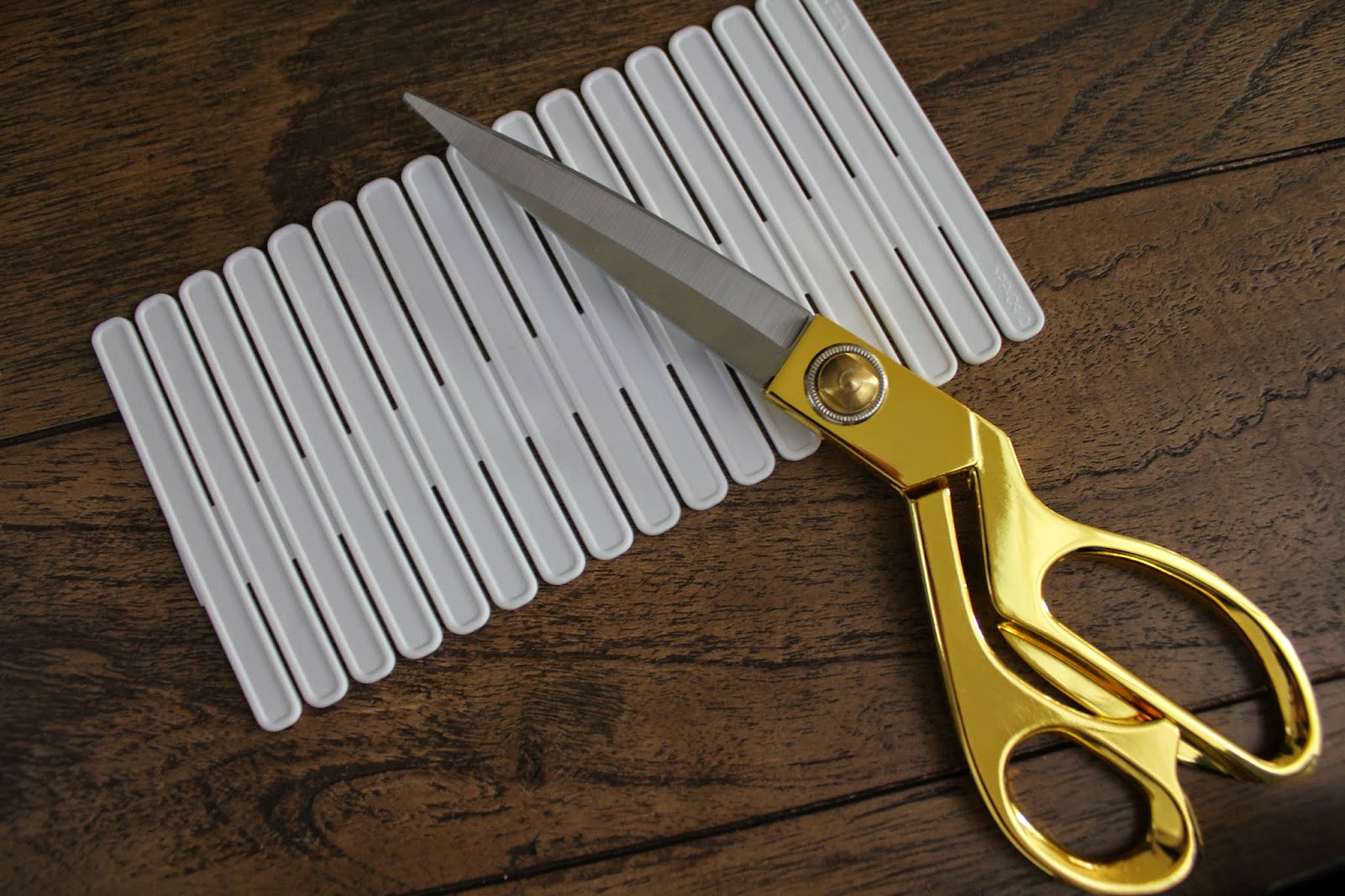 I remembered that I had purchased a roll of Duck Tape peel & stick laminate to use in a future project. It was just what I needed to add a bit of pattern and color to such a sterile space.