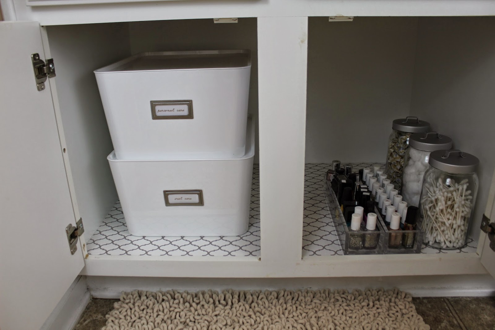 I was so far super happy with my progress on not only improving the function of my storage, but also its appearance. But what about those boring white cabinets? I started to think the new boxes would get lost in all of the white.