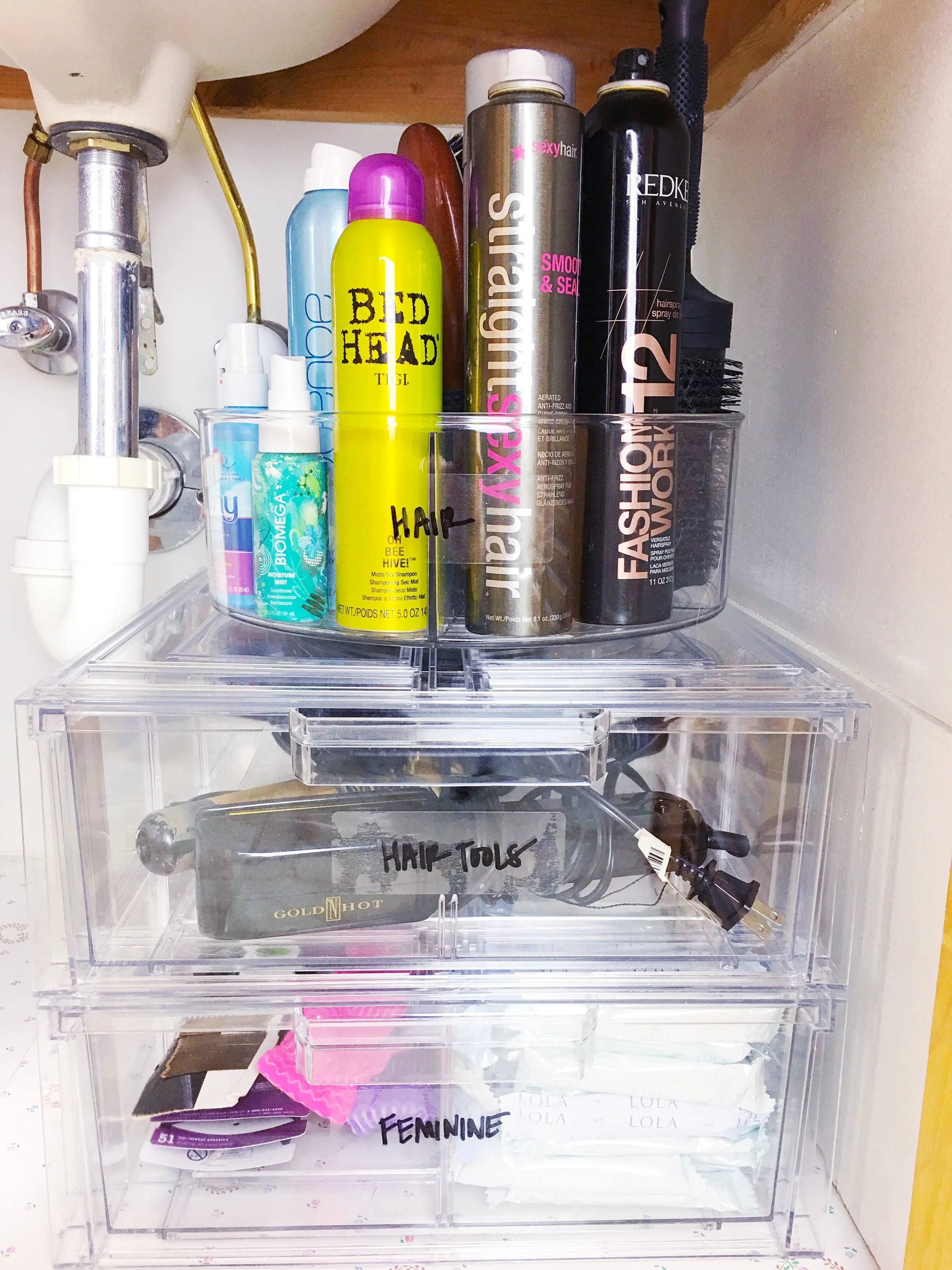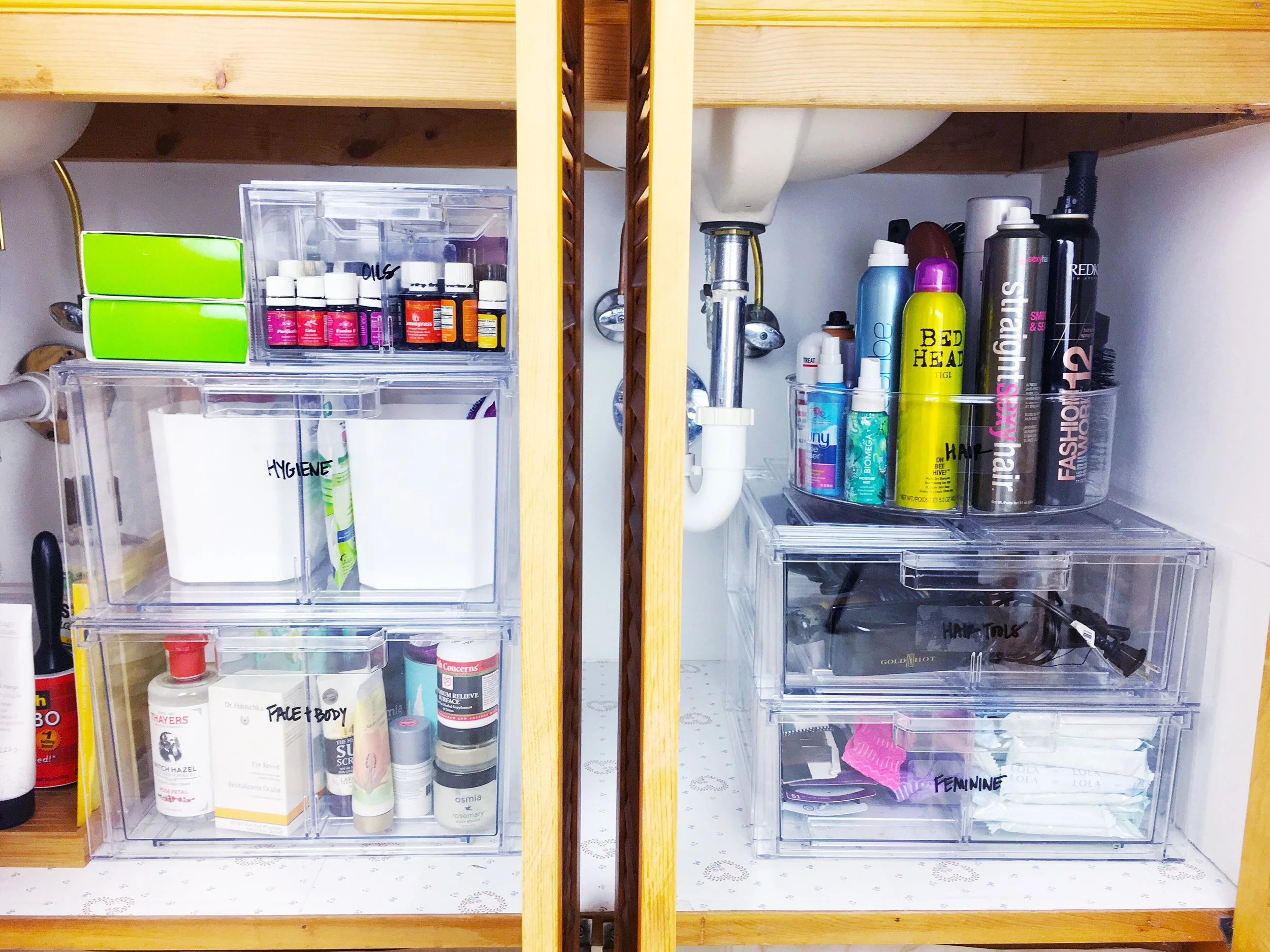 Not all bathroom vanities are created equally. Isn’t that the truth, especially if your home isn’t new construction or has been recently remodeled. And as an organizing company, we see countless bathrooms that have insufficient space, to include an absence of drawers. Whoever thought that drawers were a BAD idea in the bathroom had no clue what they were doing. And with said absence, there is always a mountain of items shoved in the cabinets and way too much product on the counter. Bad combination especially if you’re actually trying to find something in particular in a short period of time. Or ever for that matter.