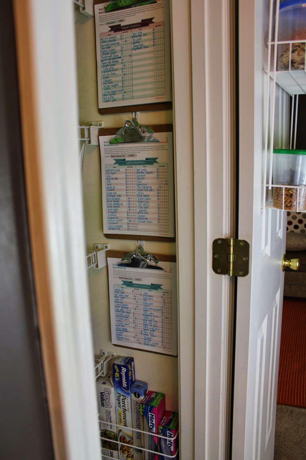 What I love about these printables, is the space to document the quantity on hand. Super duper simple, circle the number on hand and when you remove the item from the freezer or pantry, cross off the number and adjust the quantity. This will assist me in making my weekly shopping list and helping me stay on top of what items may be in need. I also have added an additional clipboard for our family's garage storage of overstock items that we purchase in bulk. After my inventory was complete, I used a few command hooks to get these bad boys up onto the wall in my pantry.
