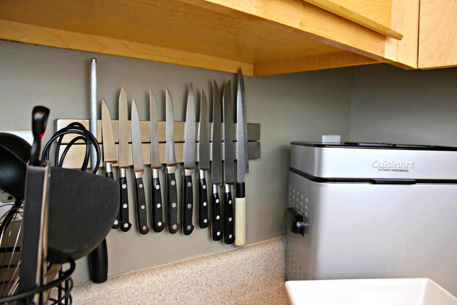 And there you have it! Ditch the knife block and add a magnetic strip to the wall to house your knives. You can thank me later!